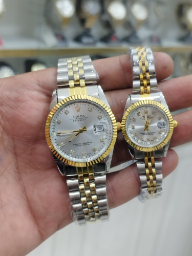 ساعت رولکس ست زنانه و مردانه تقویم دار استیل رنگ ثابت ضد آب همراه با دوتا جعبه رایگان و دوباتری اشانتیون