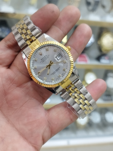 ساعت رولکس زنانه تقویم دار صفحه متوسط استیل رنگ ثابت ضد آب همراه با باتری اشانتیون