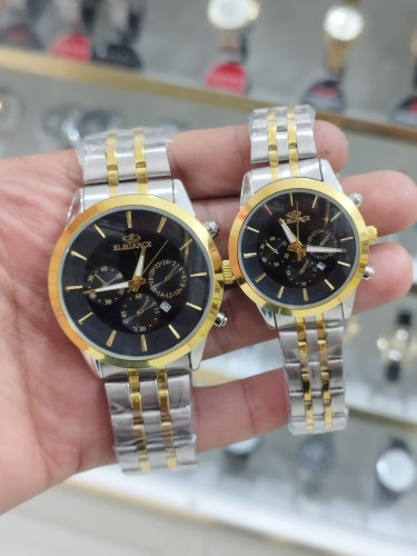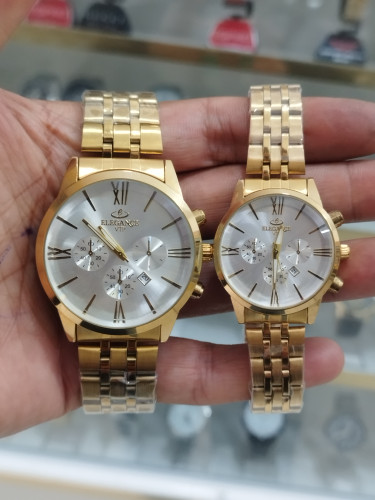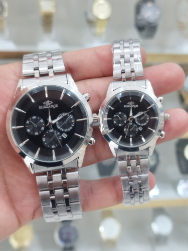 ساعت الگانس ست زنانه و مردانه تقویم دار طرح 3 موتور استیل رنگ ثابت ضد آب همراه با دوتا جعبه رایگان و دوباتری اشانتیون/
