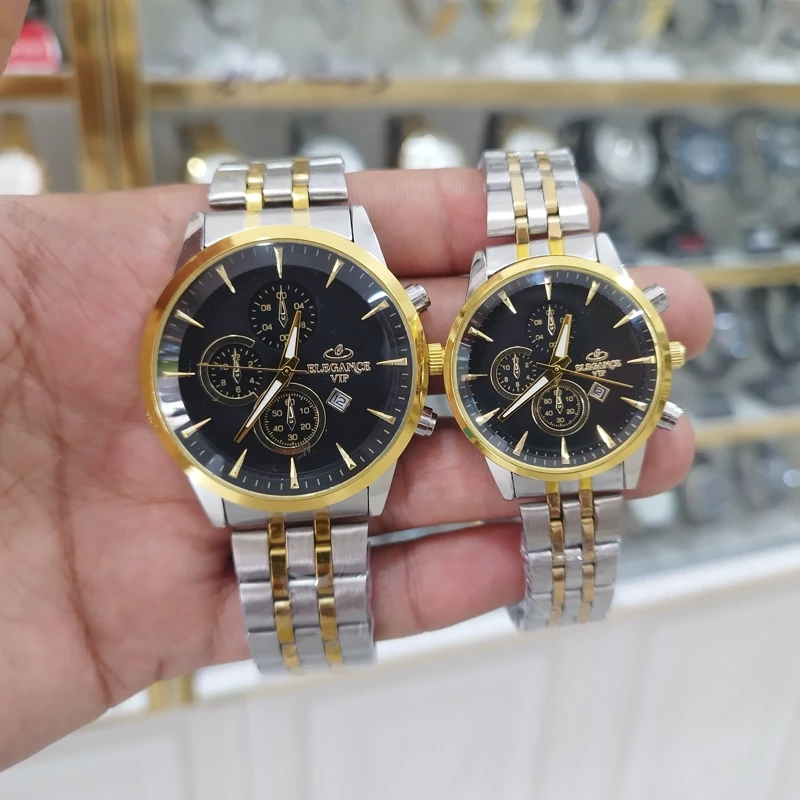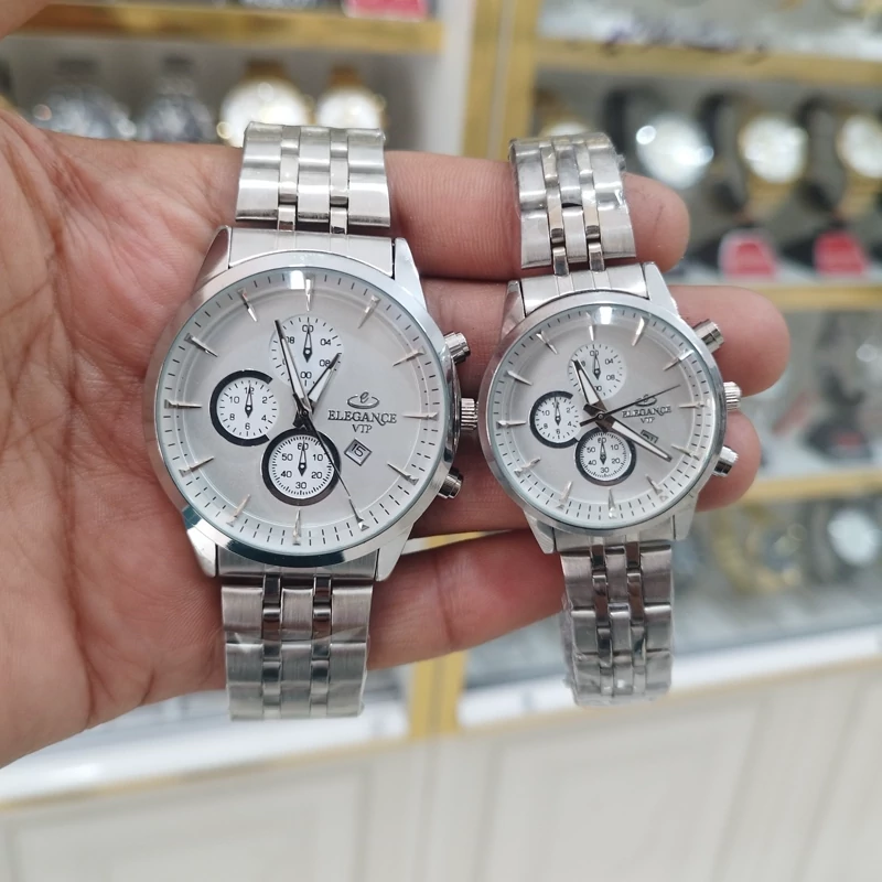 ساعت الگانس vip ست زنانه و مردانه تقویم دار طرح 3 موتور استیل رنگ ثابت ضد آب بادوتا جعبه ودوباتری اشانتیون*