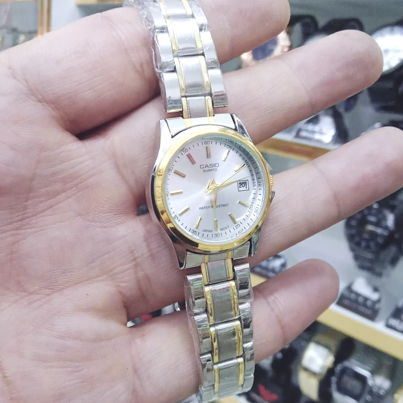 ناموجودساعت کاسیو زنانه تقویم دار داخل صفحه و پشت ساعت هم حک شده ژاپن رنگ ثابت ضد اب استیل همراه با باتری اشانتیون