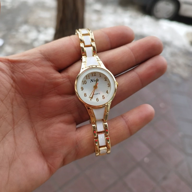ساعت زنانه دخترانه صفحه گرد شیشه تراش دار طرح الماس قفل ریلی قابلیت کوتاه شدن اسان استیل رنگ ثابت ضدآب با باتری اشانتیون