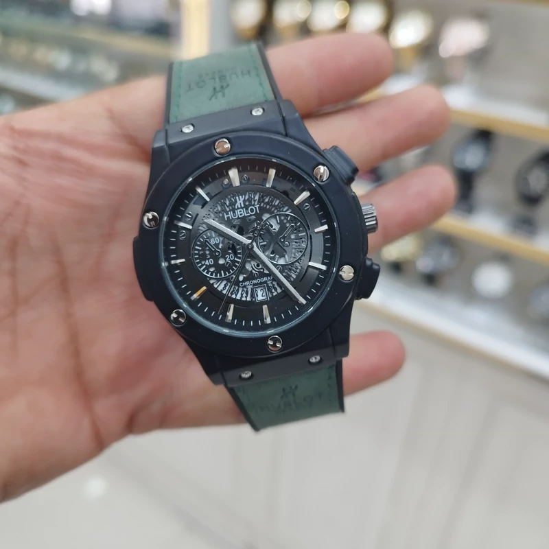 ساعت هابلوت مردانه جدید و خاص تقویم دار طرح 3موتور بند سیلیکونی پشت پیچ همراه باجعبه رایگان وباتری اشانتیون