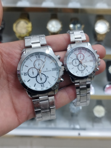 ساعت رومانسون ست زنانه و مردانه تقویم دار طرح 3 موتور استیل رنگ ثابت ضد آب همراه با دوتا جعبه رایگان و دوباتری اشانتیون*