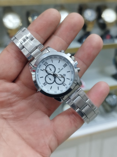 ساعت مردانه استیل رنگ ثابت طرح 3موتور قفل فشاری همراه با باتری اشانتیون