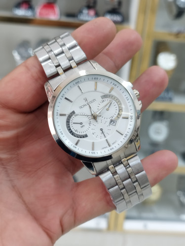 ساعت رومانسون تقویم دار طرح 3موتور بند رولکسی قفل فشاری همراه با باتری اشانتیون