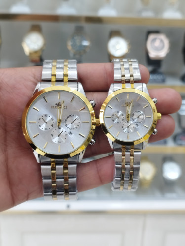 ساعت الگانس ست زنانه و مردانه تقویم دار طرح 3 موتور استیل رنگ ثابت ضد آب همراه با دوتا جعبه رایگان و دوباتری اشانتیون/
