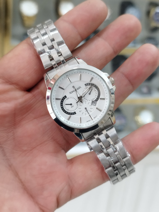 ساعت رومانسون زنانه تقویم دار طرح 3 موتور استیل رنگ ثابت ضد آب همراه با جعبه رایگان و باتری اشانتیون///