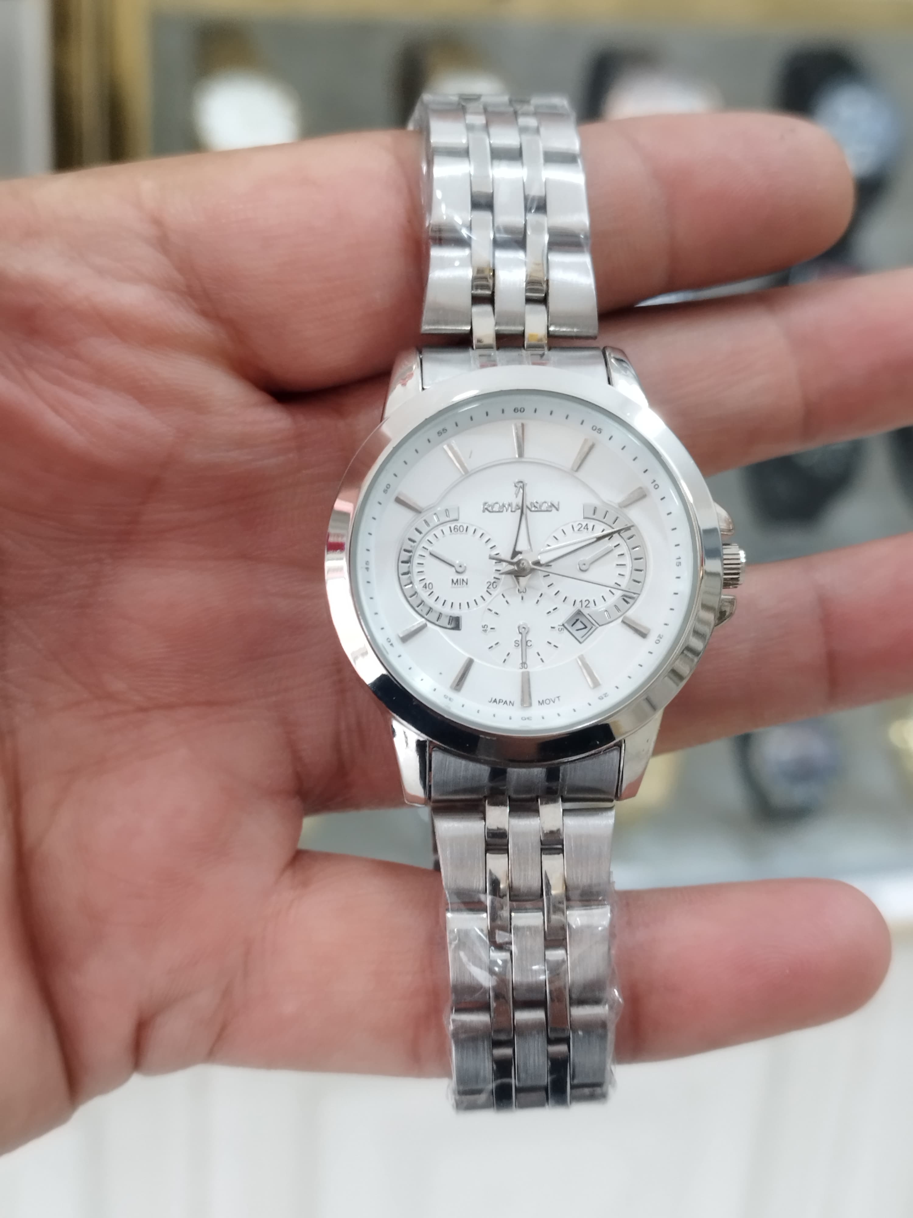 ساعت رومانسون زنانه تقویم دار طرح 3 موتور استیل رنگ ثابت ضد آب همراه با جعبه رایگان و باتری اشانتیون///