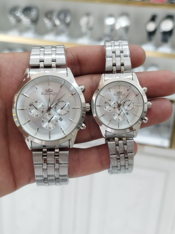 ساعت الگانس ست زنانه و مردانه طرح جدید تقویم دار طرح 3 موتور استیل رنگ ثابت ضد آب همراه با دوتا جعبه رایگان و دوباتری اشانتیون،،