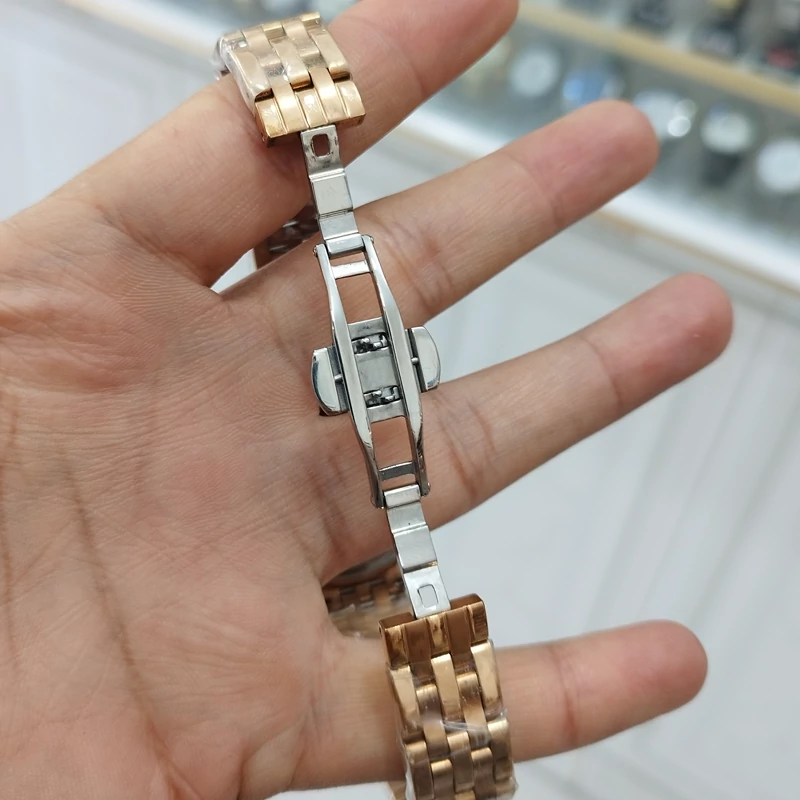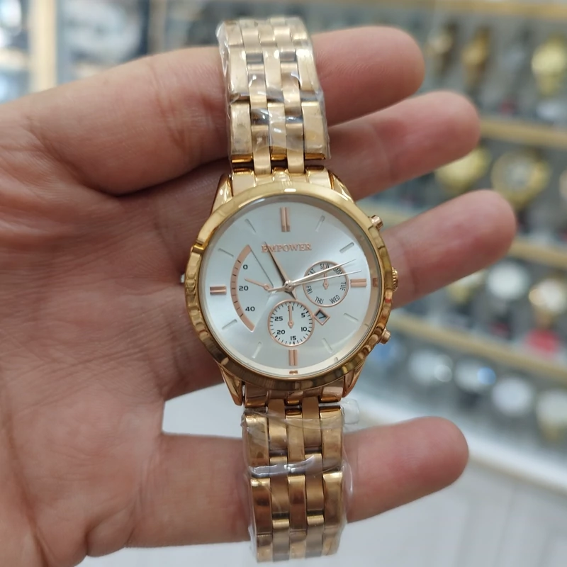ساعت امپاور زنانه استیل قفل مخفی قفل پروانه ای رنگ ثابت ضدآب تقویم دار طرح 3 موتور همراه با جعبه رایگان
