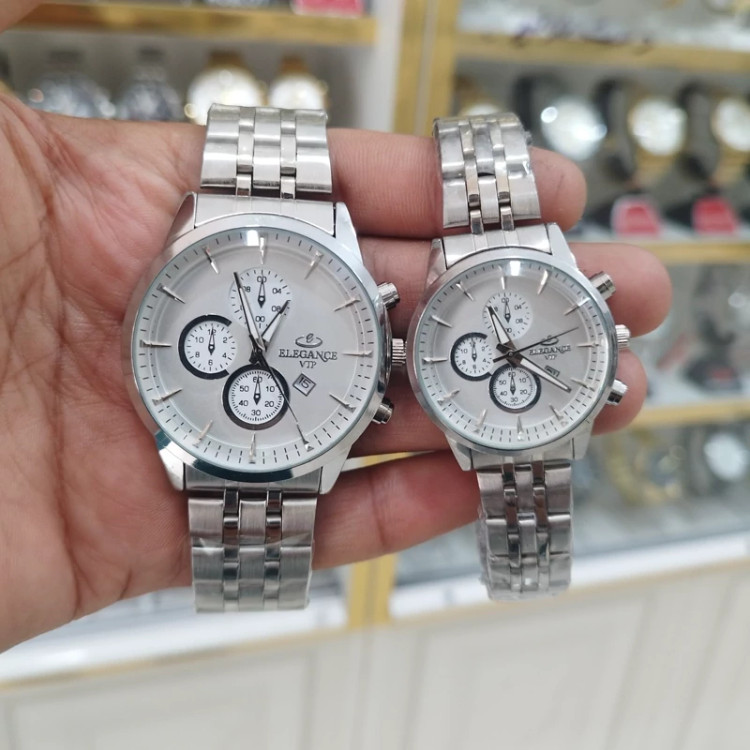 ساعت الگانس vip ست زنانه و مردانه تقویم دار طرح 3 موتور استیل رنگ ثابت ضد آب ارسال رایگان بادوتا جعبه ودوباتری اشانتیونـ
