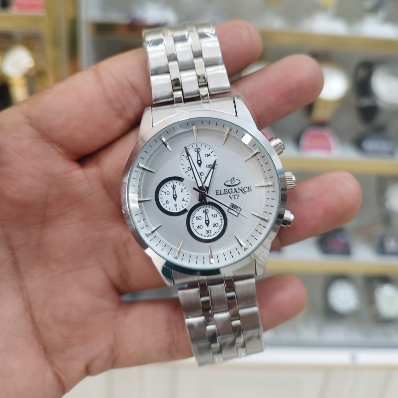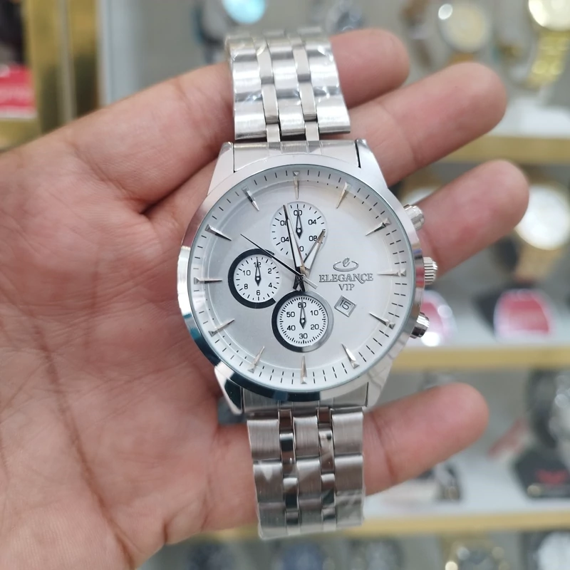 ساعت الگانس vip ست زنانه و مردانه تقویم دار طرح 3 موتور استیل رنگ ثابت ضد آب بادوتا جعبه ودوباتری اشانتیون0