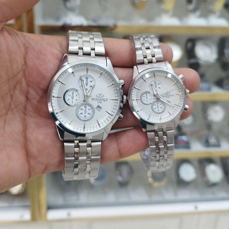 ساعت الگانس vip ست زنانه و مردانه تقویم دار طرح 3 موتور استیل رنگ ثابت ضد آب ارسال رایگان بادوتا جعبه ودوباتری اشانتیونـ