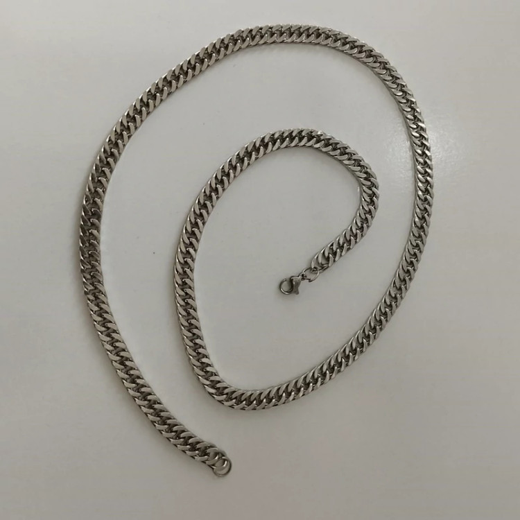 گردنبند کارتیر مردانه و زنانه استیل نقره ای متوسط سایز 6 میل طول 55 سانت قفل و خود زنجیر استیل رنگ کلاا ثابت