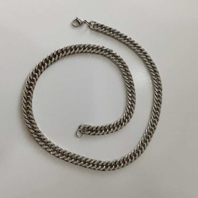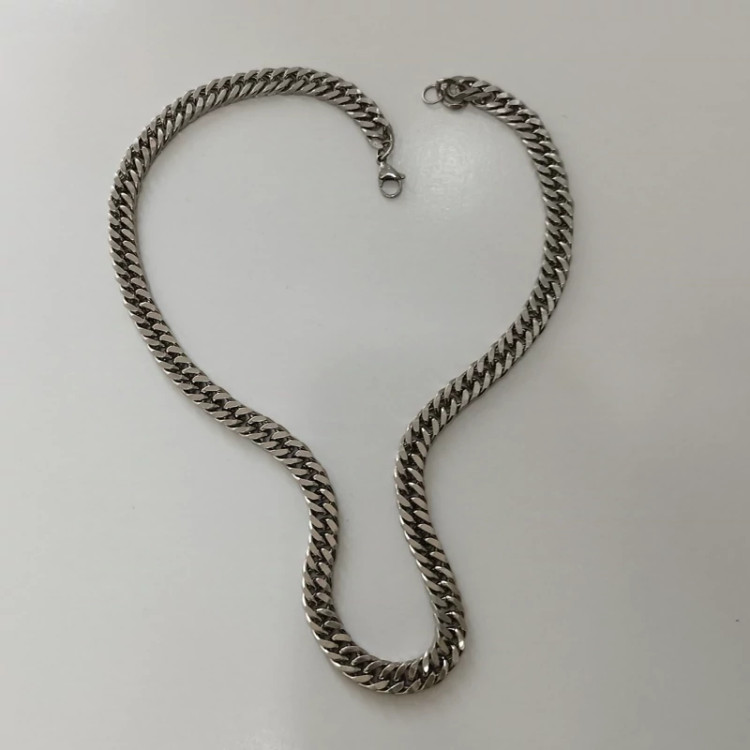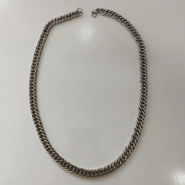 گردنبند کارتیر مردانه استیل نقره ای درشت سایز 8 میل طول 55 سانت قفل و خود زنجیر استیل رنگ کلااا ثابت