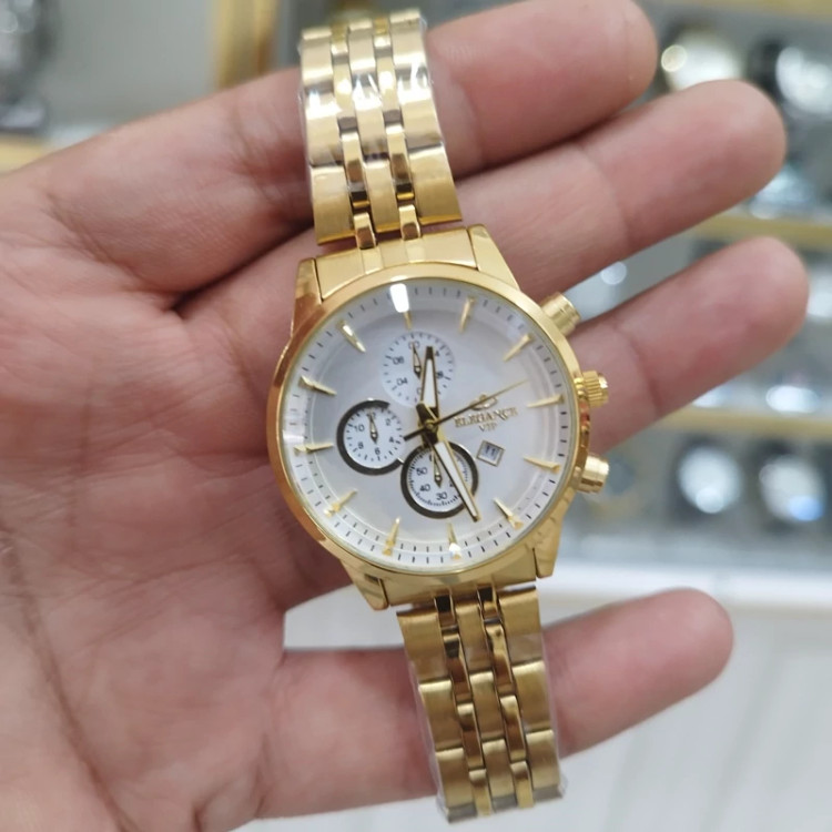ساعت الگانس vip زنانه تقویم دار طرح 3 موتور استیل رنگ ثابت ضد آب ارسال رایگان همراه باجعبه رایگان وباتری اشانتیون-