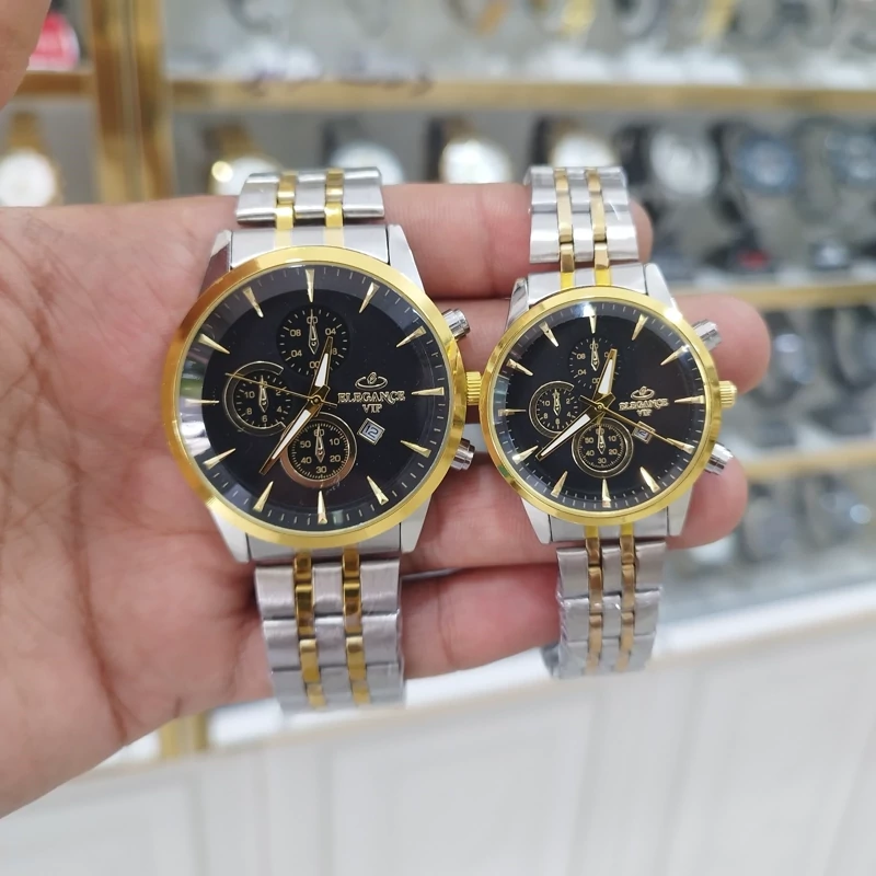 ساعت الگانس vip ست زنانه و مردانه تقویم دار طرح 3 موتور استیل رنگ ثابت ضد آب ارسال رایگان بادوتا جعبه ودوباتری اشانتیون*