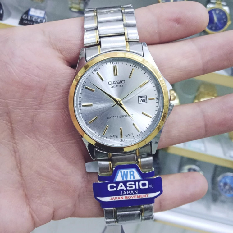 ساعت مردانه کاسیو تقویم دار داخل صفحه و پشت ساعت هم حک شده ژاپن ضد اب رنگ ثابت همراه با باتری اشانتیون