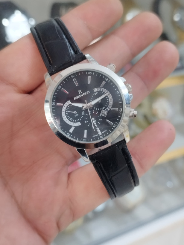 ساعت رومانسون زنانه تقویم دار طرح 3 موتور رنگ ثابت بند چرم قفل سگکی همراه با باتری اشانتیون