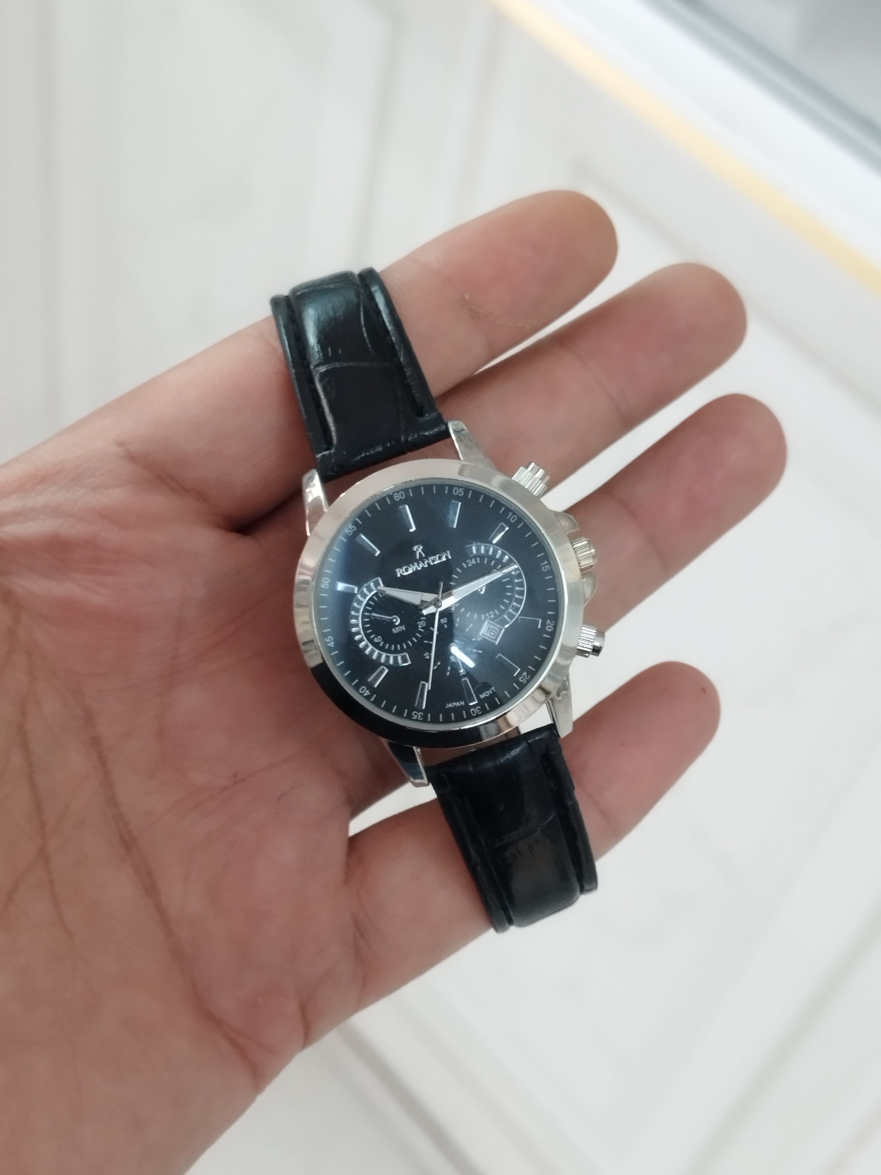 ساعت رومانسون زنانه تقویم دار طرح 3 موتور رنگ ثابت بند چرم قفل سگکی همراه با باتری اشانتیون