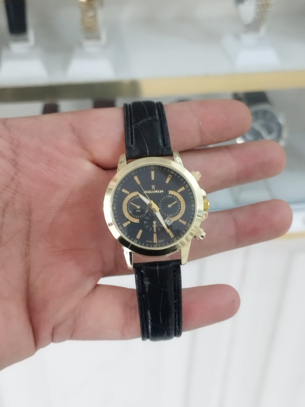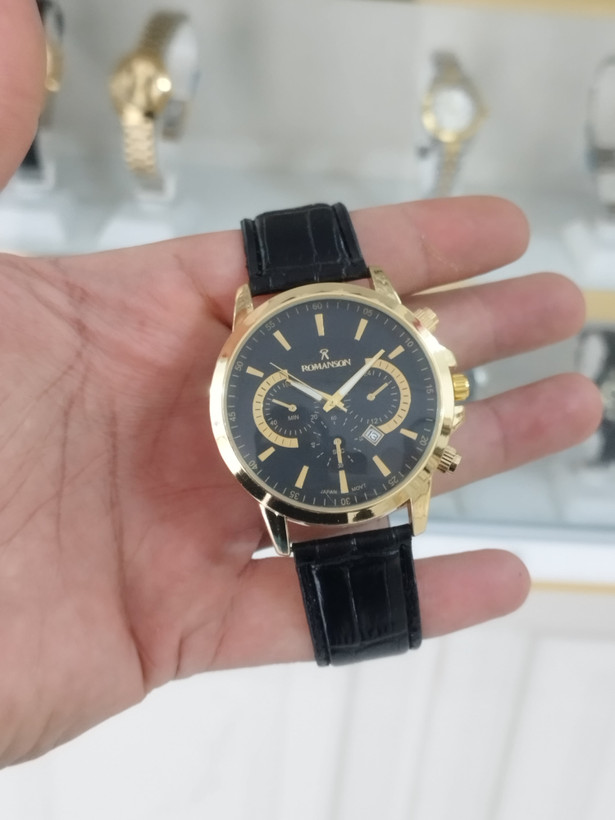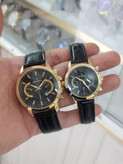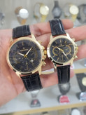 ساعت ست رومانسون زنانه و مردانه تقویم دار طرح 3موتور رنگ ثابت بند چرم قفل سگکی همراه با دوتا جعبه رایگان و دوباتری اشانتیون