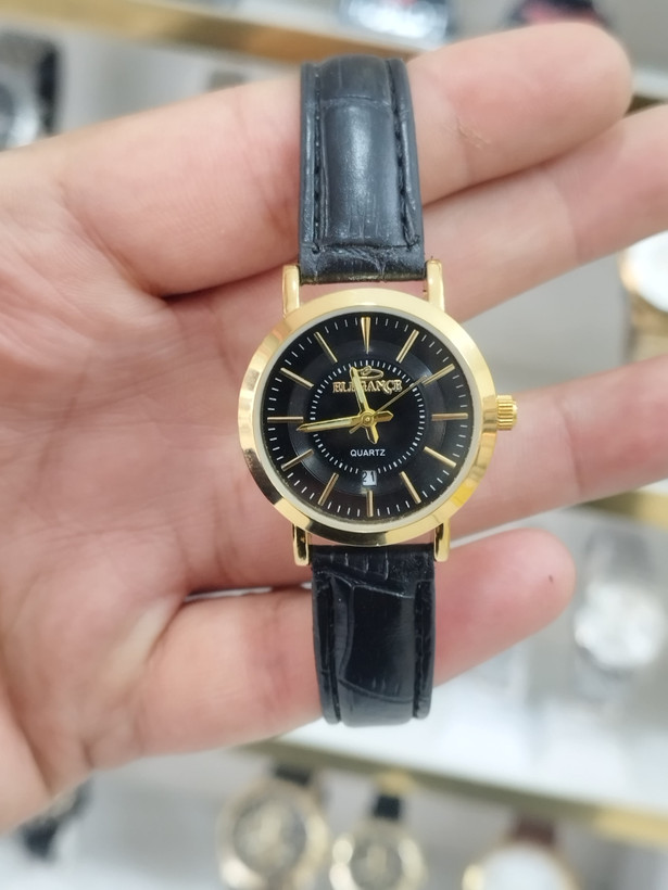ساعت الگانس زنانه تقویم دار رنگ ثابت ضدآب بند چرم قفل سگکی همراه با باتری اشانتیون