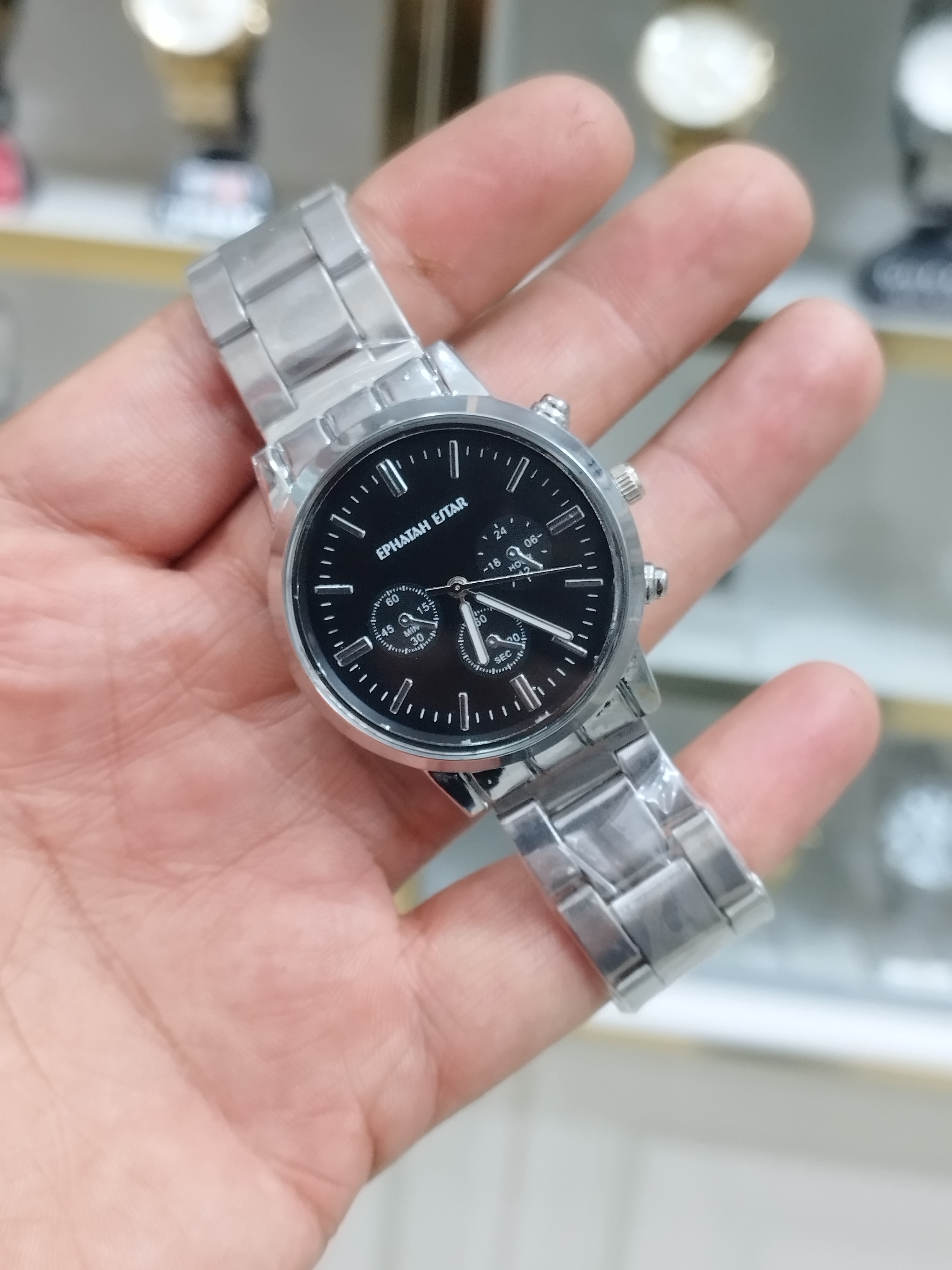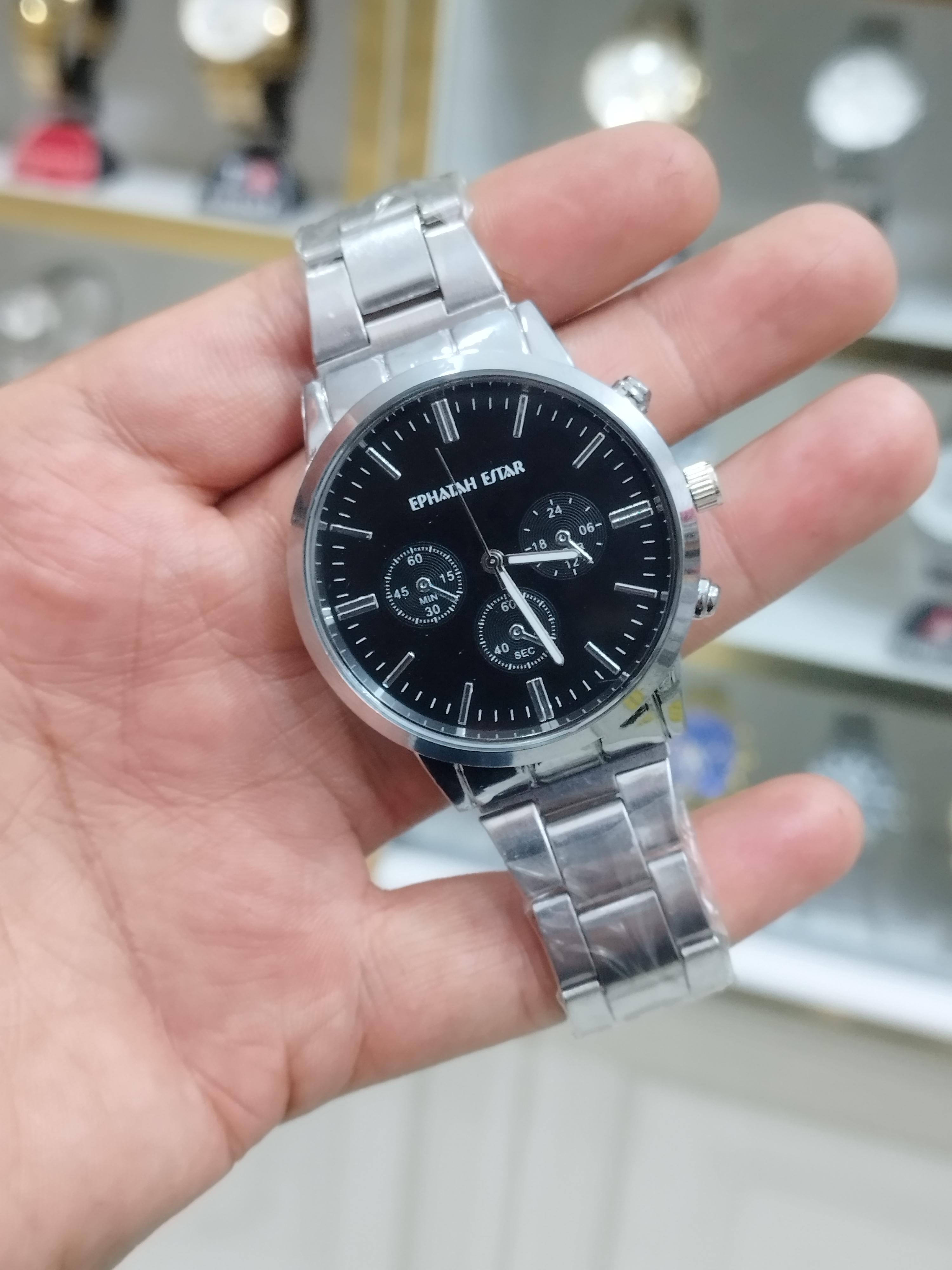 ساعت ست زنانه و مردانه استیل طرح 3موتور رنگ ثابت بند استیل قفل فشاری همراه با دوتا جعبه رایگان و دوباتری اشانتیون