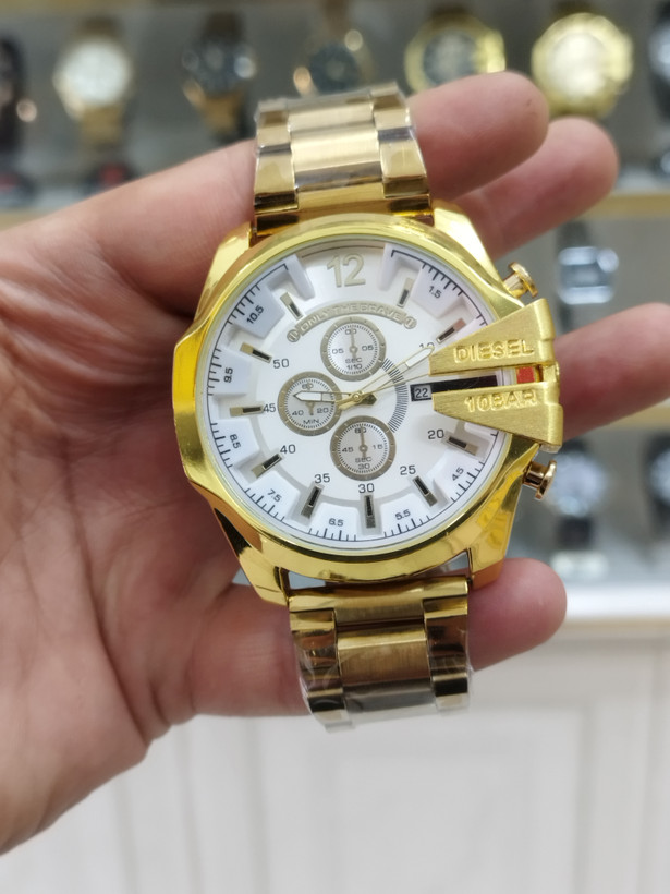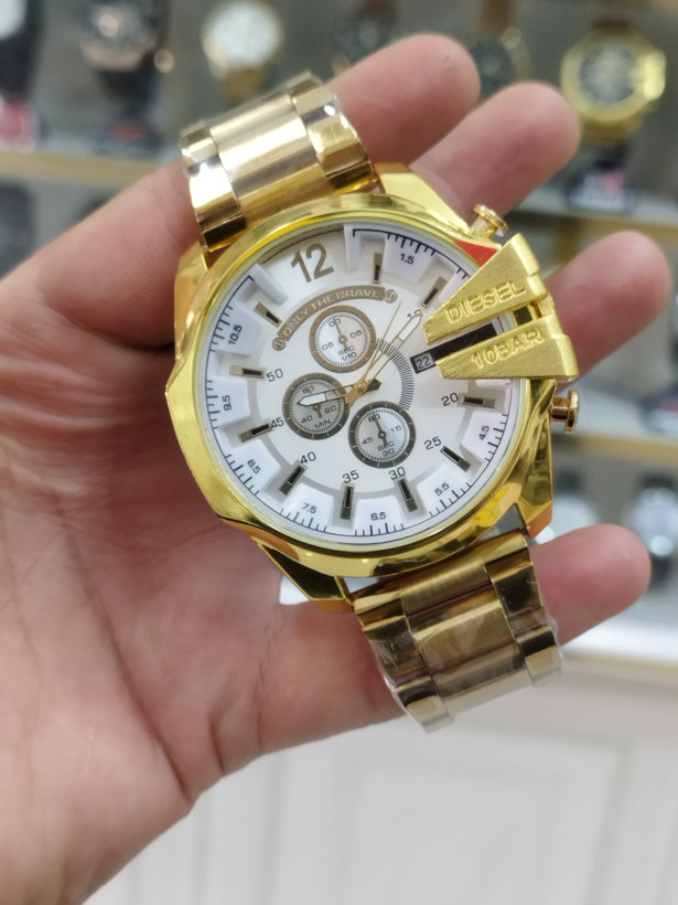 ساعت دیزل مردانه تقویم دار طرح 3 موتور ساعت سنگین صفحه بزرگ استیل رنگ ثابت همراه با باتری اشانتیون