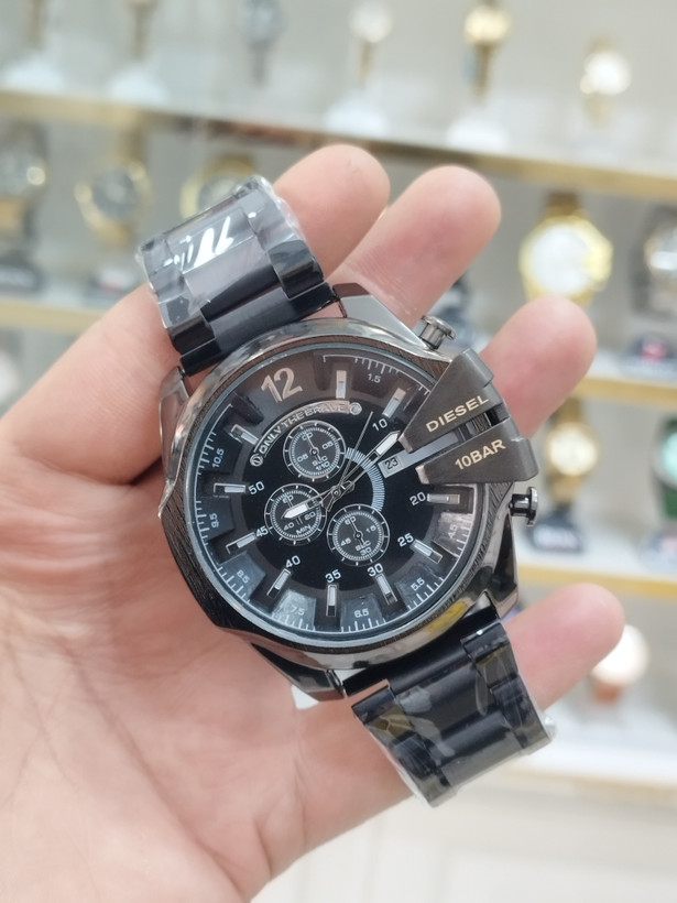 ساعت دیزل مردانه تقویم دار طرح 3 موتور ساعت سنگین صفحه بزرگ استیل رنگ ثابت همراه با باتری اشانتیون