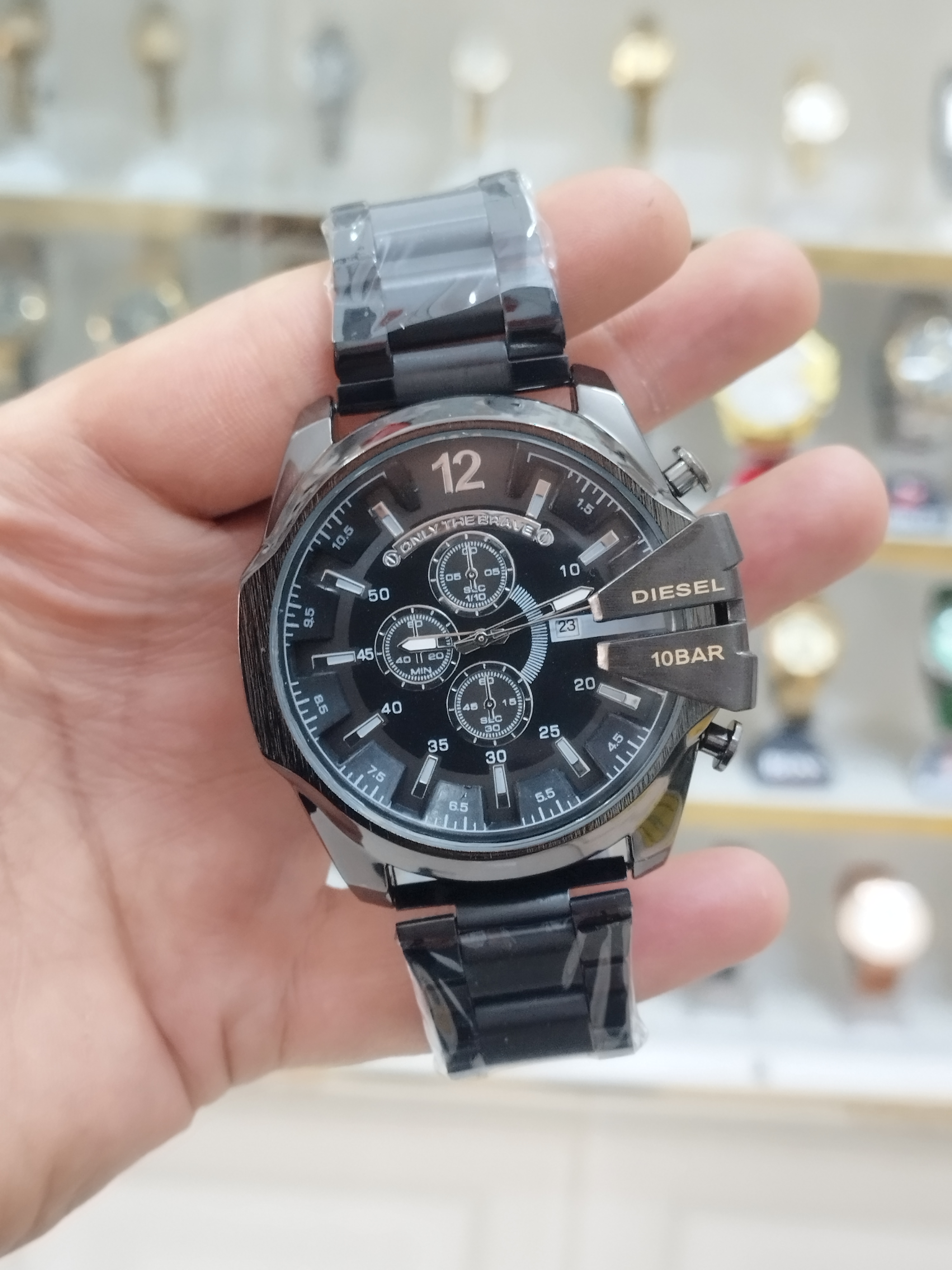 ساعت دیزل مردانه تقویم دار طرح 3 موتور ساعت سنگین صفحه بزرگ استیل رنگ ثابت همراه با باتری اشانتیون
