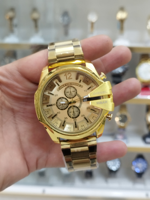 ساعت دیزل مردانه تقویم دار طرح 3 موتور ساعت سنگین صفحه بزرگ استیل رنگ ثابت همراه با باتری اشانتیون