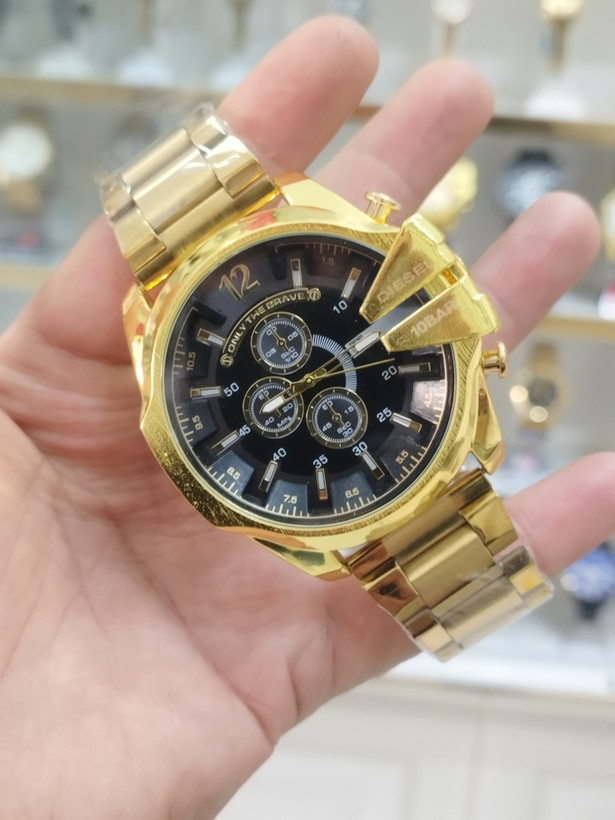 ساعت دیزل مردانه تقویم دار طرح 3 موتور ساعت سنگین صفحه بزرگ استیل رنگ ثابت همراه با باتری اشانتیون