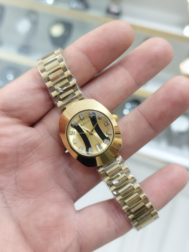 ساعت رادو ست زنانه مردانه صفحه تخم مرغی استیل رنگ ثابت ضدآب تقویم دار قفل مشابه اصلی کشیی پشت ساعت داخل ساعت و روی قفل رادو حک شده همراه با دوتا جعبه رایگان و دوباتری اشانتیون