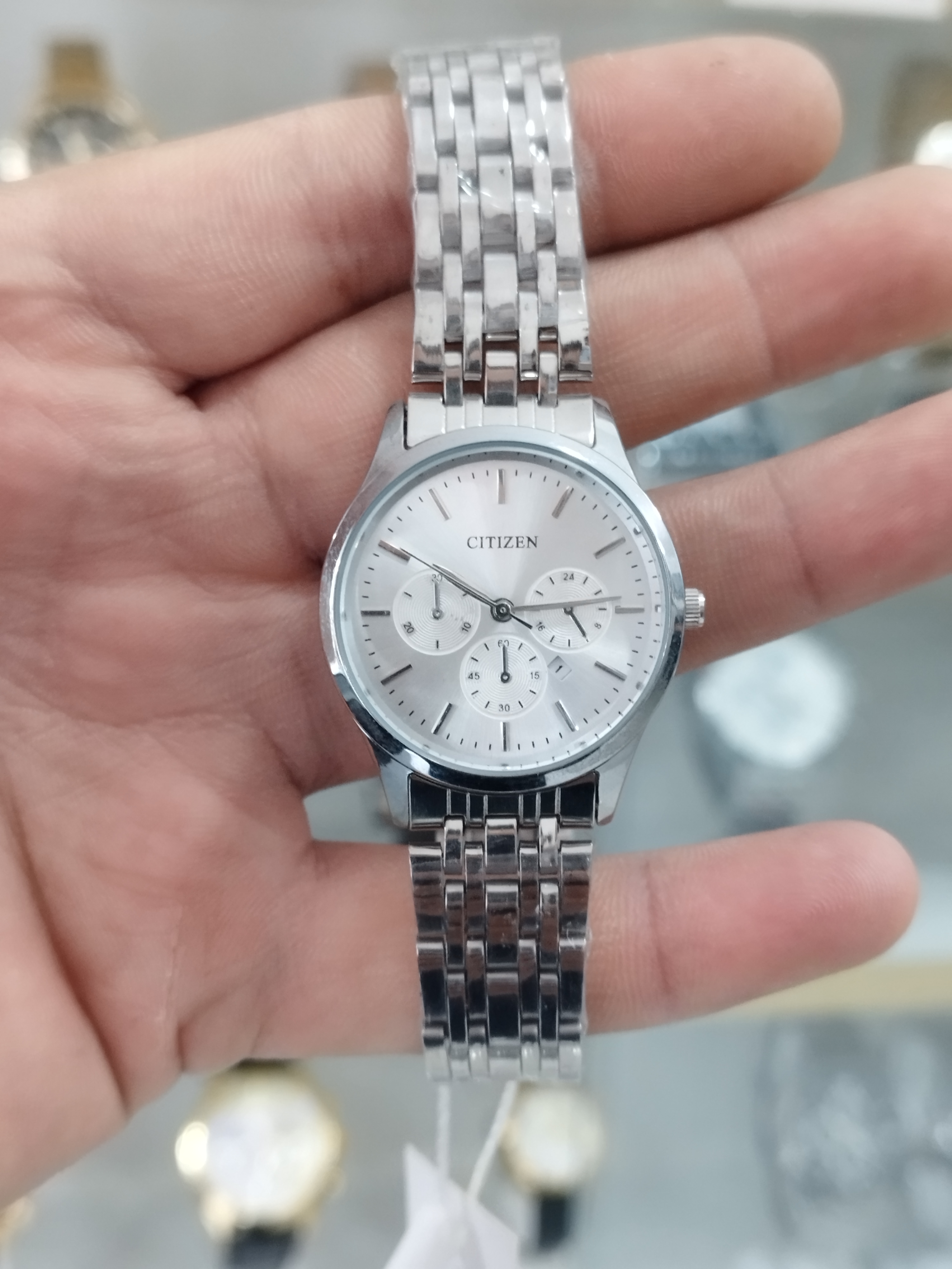 ساعت سیتیزن زنانه تقویم دار استیل رنگ ثابت ضد آب طرح 3موتور همراه با جعبه رایگان و باتری اشانتیون