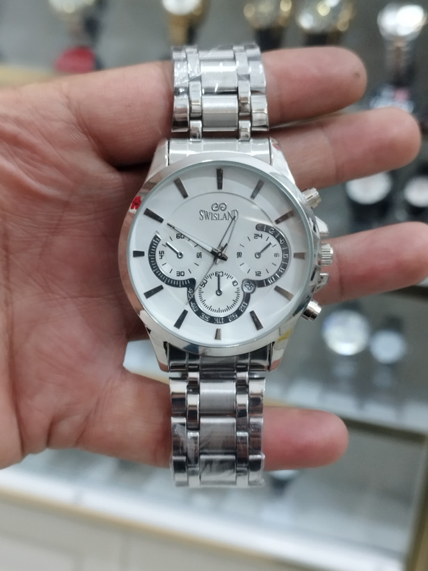 ساعت سوئیسلند مردانه تقویم دار طرح 3 موتور استیل رنگ ثابت ضد آب همراه با جعبه رایگان و باتری اشانتیون