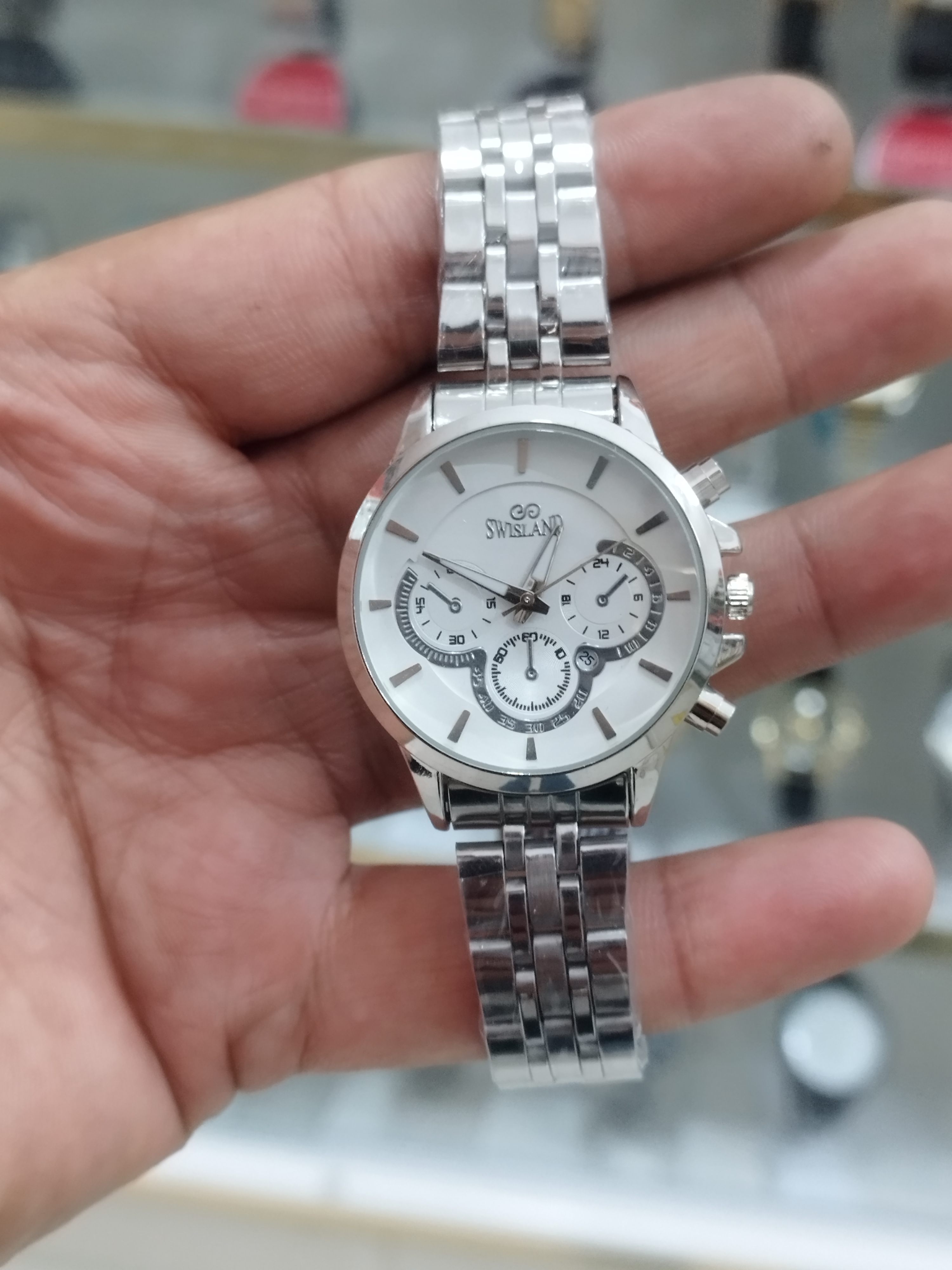 ساعت سوئیسلند تقویم دار طرح 3 موتور استیل رنگ ثابت ضد آب همراه با جعبه رایگان و باتری اشانتیون
