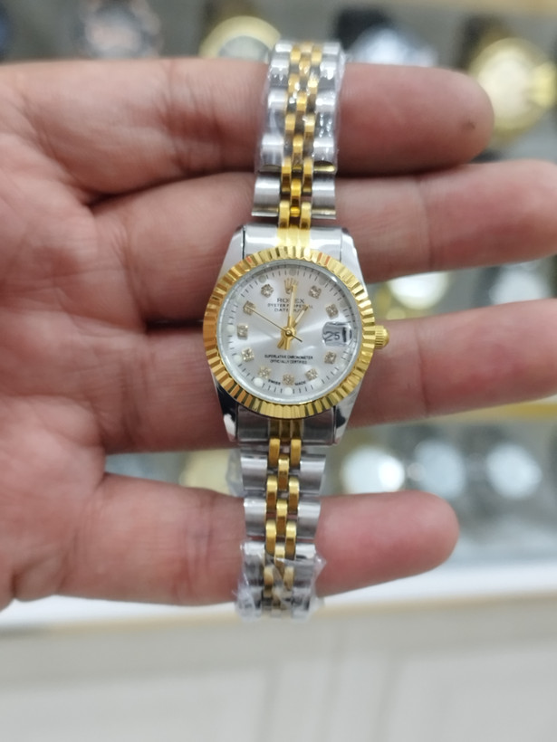 ساعت رولکس ست زنانه و مردانه تقویم دار استیل رنگ ثابت ضد آب همراه با دوتا جعبه رایگان و دوباتری اشانتیون
