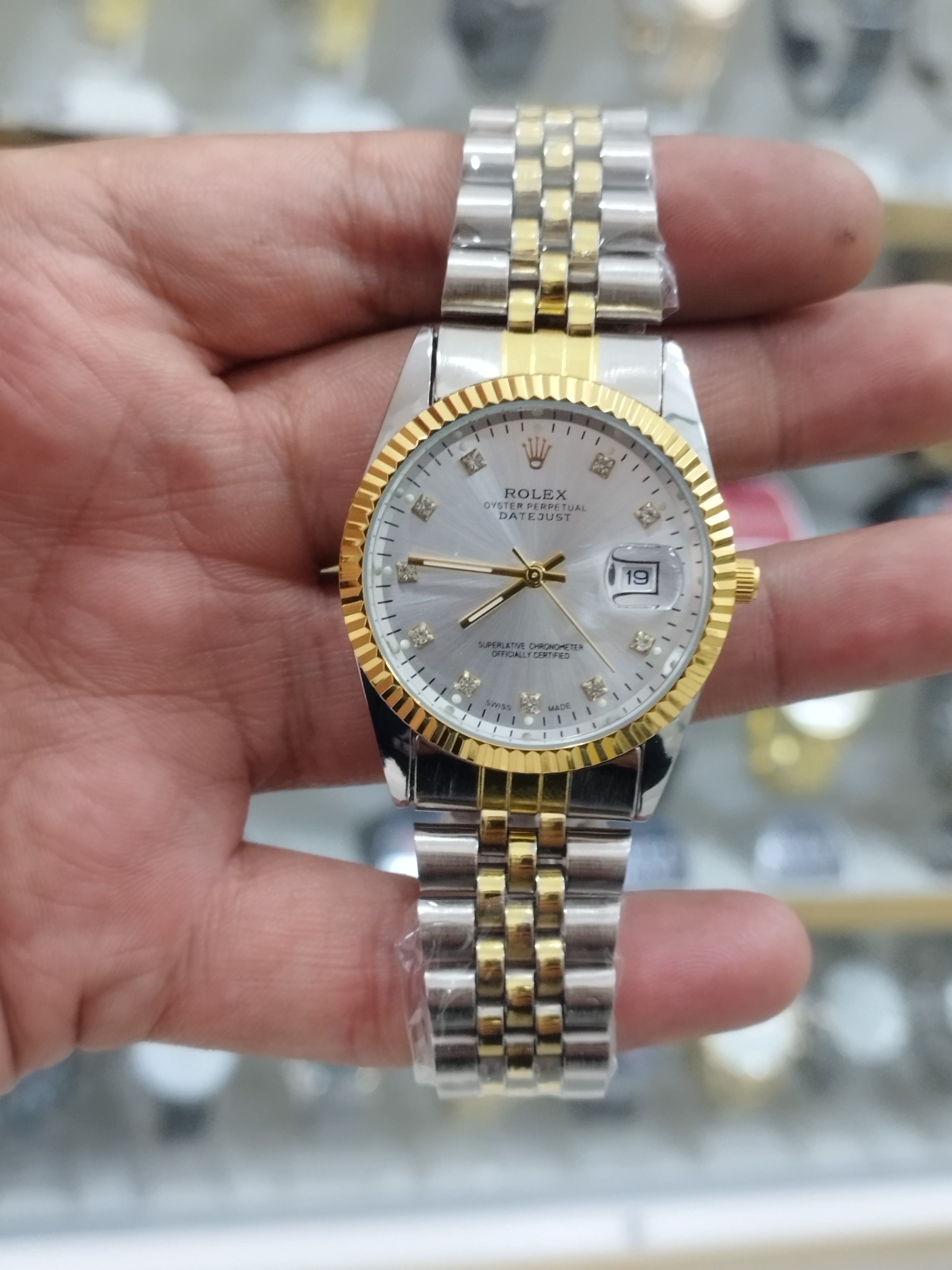 ساعت رولکس ست زنانه و مردانه تقویم دار استیل رنگ ثابت ضد آب همراه با دوتا جعبه رایگان و دوباتری اشانتیون