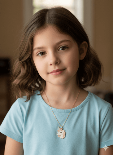 گردنبند دخترانه پلاک اسب تک شاخ یونیکورن همراه با زنجیر 45 سانتی رنگ ثابت استیل