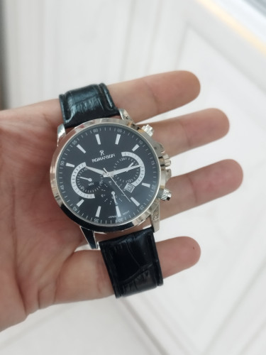 ساعت رومانسون مردانه تقویم دار طرح 3موتور رنگ ثابت بند چرم قفل سگکی همراه با باتری اشانتیون