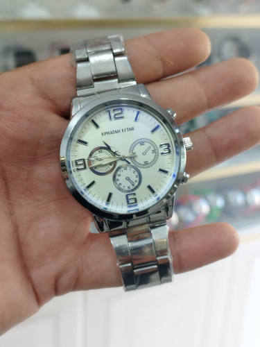 ساعت مردانه استیل طرح 3موتور رنگ ثابت بند استیل قفل فشاری همراه با باتری اشانتیون