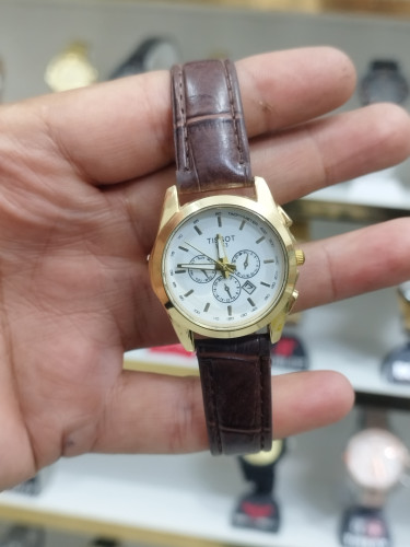 ساعت تیسوت زنانه دخترانه تقویم دار طرح 3 موتور بند چرم قفل سگکی همراه با باتری اشانتیون