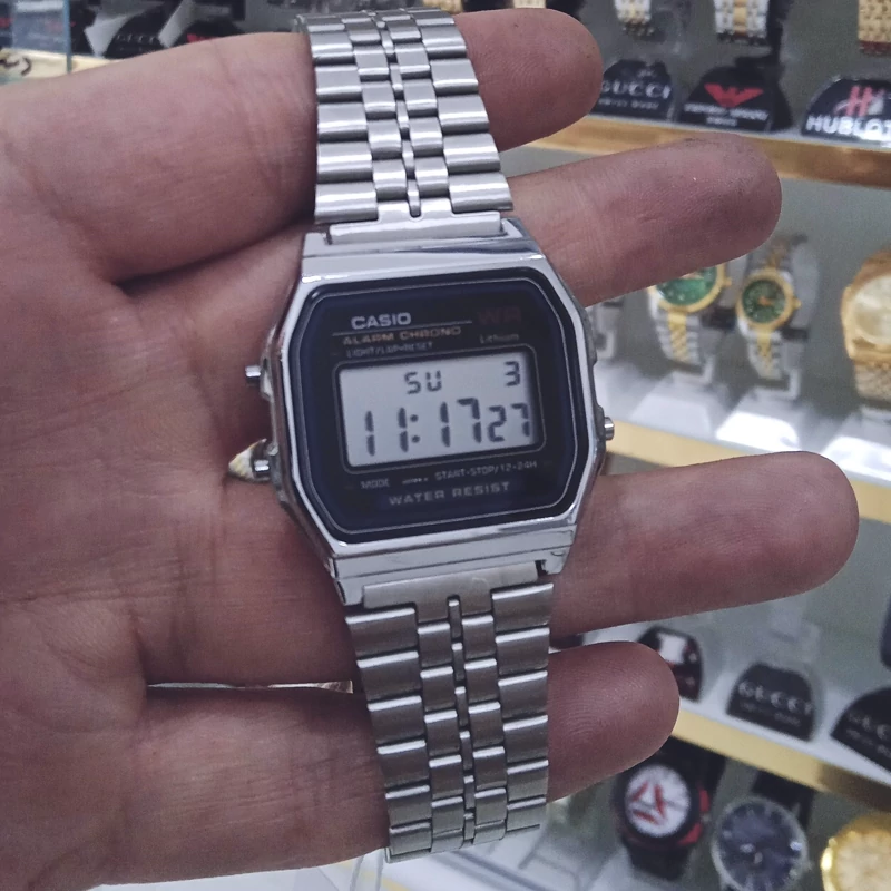 ساعت کاسیو مردانه نوستالژی کامپیوتری دیجیتال دارای آلارم کرنومتر چراغ تاریخ استیل رنگ ثابت ضدآب همراه با باتری اشانتیون