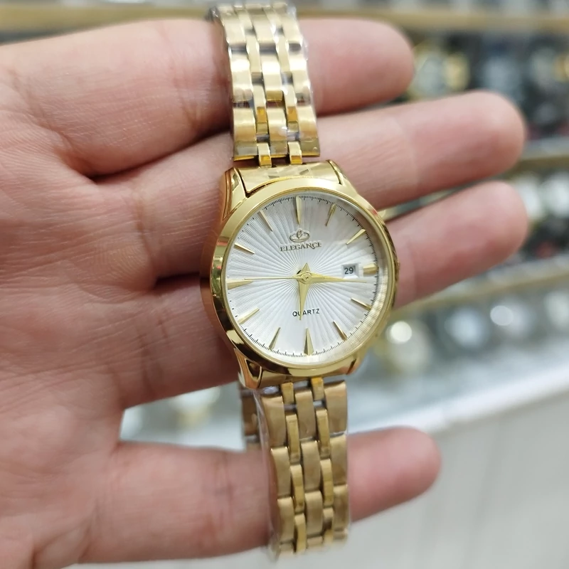 ساعت الگانس زنانه تقویم دار ضدآب رنگ ثابت استیل همراه با جعبه رایگان.