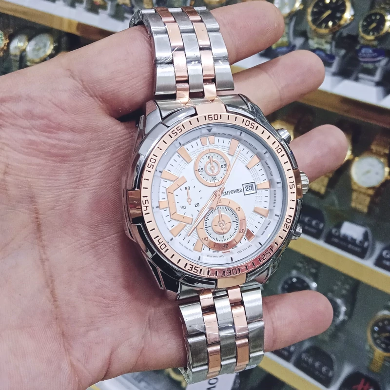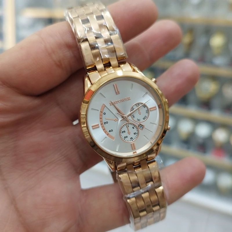 ساعت امپاور زنانه استیل قفل مخفی قفل پروانه ای رنگ ثابت ضدآب تقویم دار طرح 3 موتور همراه با جعبه رایگان