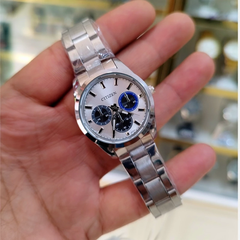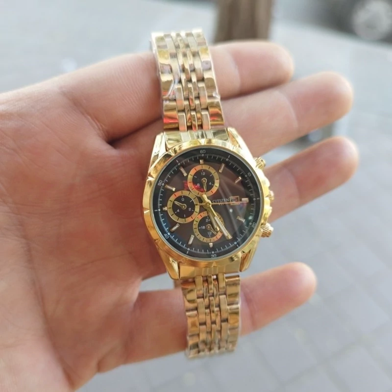 ساعت سیتیزن VIPمردانه تقویم داراستیل رنگ ثابت ضداب موتور ژاپن طرح 3موتور همراه با جعبه رایگان