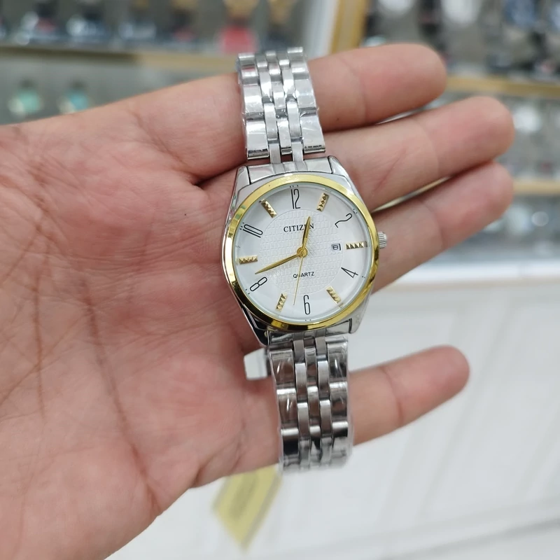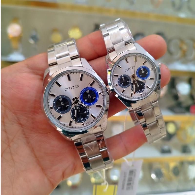 ساعت ست سیتیزن vip زنانه و مردانه تقویم دار استیل رنگ ثابت ضد آب همراه بادوتا جعبه رایگان ودوباتری اشانتیون