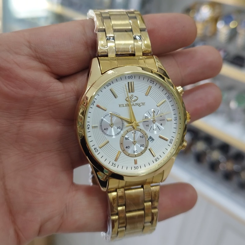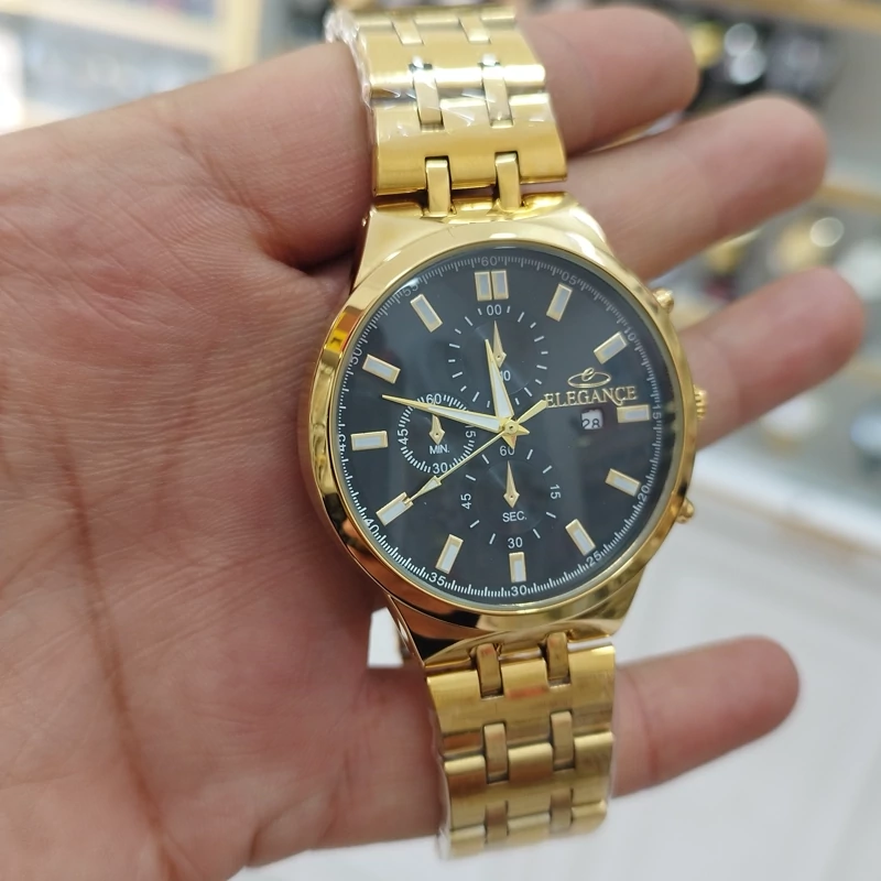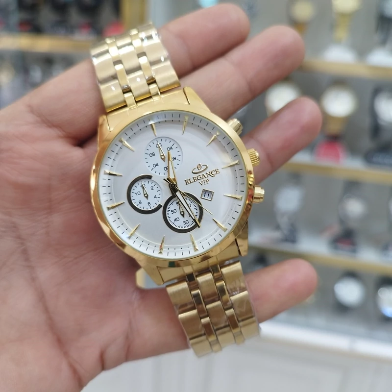 ساعت الگانس vip مردانه تقویم دار طرح 3 موتور استیل رنگ ثابت ضد آب همراه باجعبه رایگان وباتری اشانتیون-