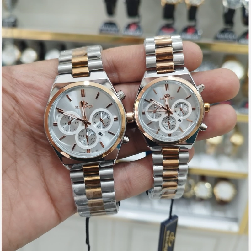 ساعت الگانس ست زنانه مردانه تقویم دار طرح 3موتور استیل رنگ ثابت ضد آب ارسال رایگان همراه با باتری اشانتیون و جعبه رایگان